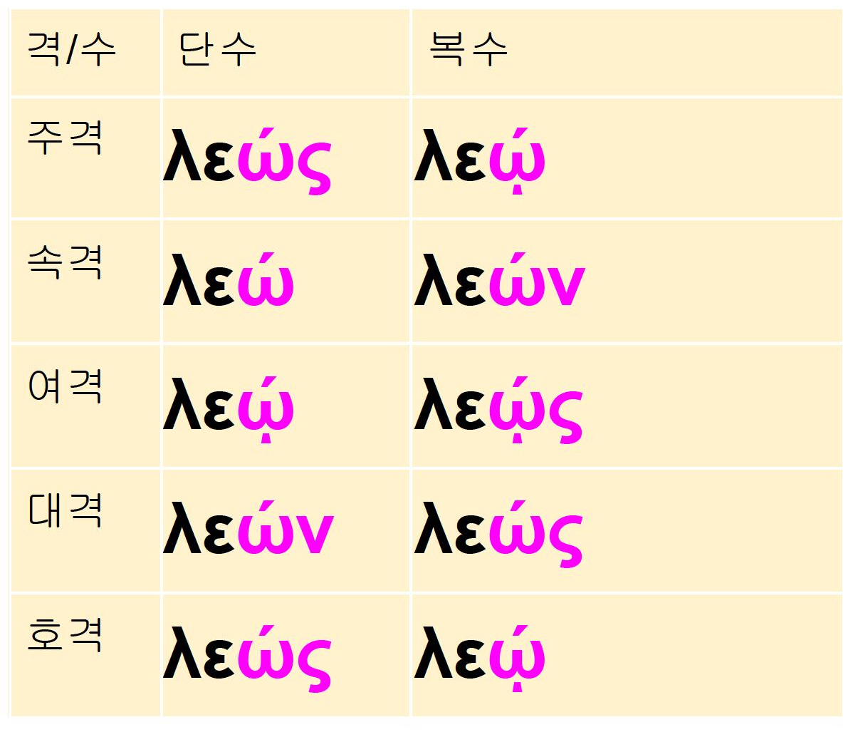 명사 2변화 ω어간 명사의 변화 (아티케 그리스어)