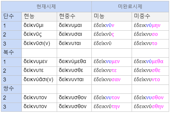 (1) δείκνῡμι(보여주다) 미완료시제