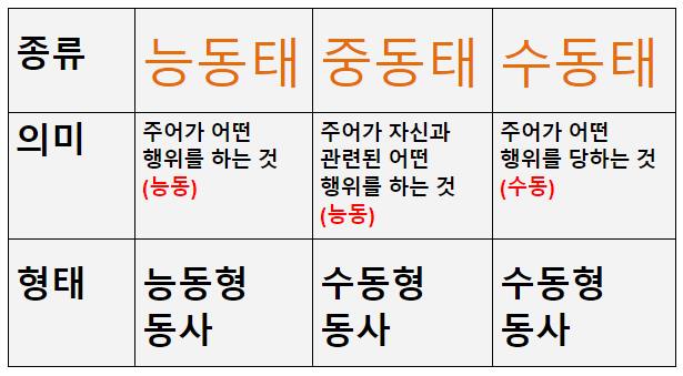1) 3가지 태(voice)