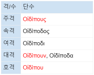 대격 Οἰδίποδα은 규칙, Οἰδίπουν은 불규칙