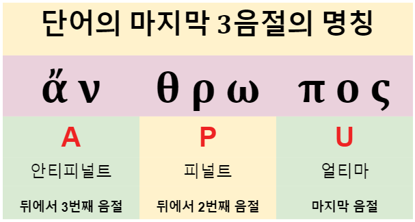 1) 그리스어 액센트는 마지막 3개 음절 중에 온다.