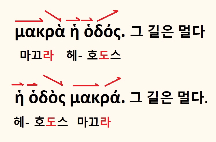 μακρὰ ἡ ὁδός. 마지막 음절에 하강세