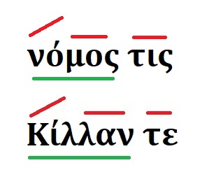 νόμος τις (어떤 법) : 후치접어가 단음절어일 때 칸토네이션 + 1개의 모라가 오는 구조로 후치접어에 액센트가 오지 않는다.