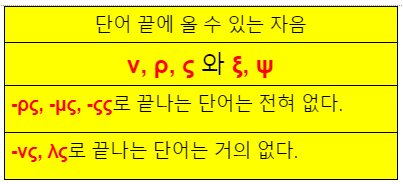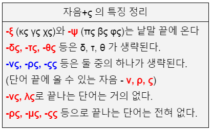 1) 단어 끝에 올 수 있는 자음 - ν, ρ, ς 와 ξ, ψ(느르스 끄스 쁘스)