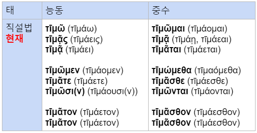 복수 : τιμῶμεν, τιμᾶτε, τιμῶσι(ν)