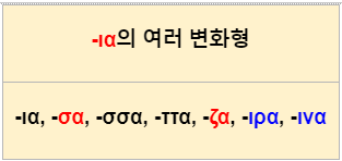 ⓐ ια는 그 자체로 쓰이거나 σα 등으로 변하여 쓰인다.