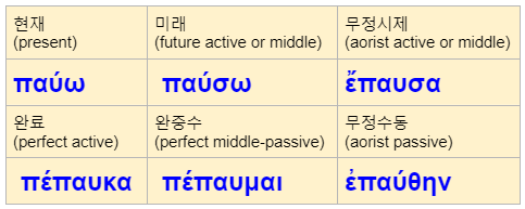 표제형(lemma) : παύω 멈추다.