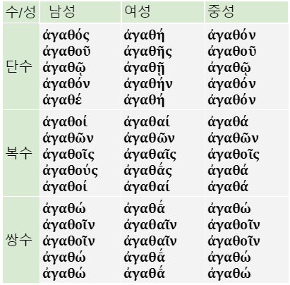 주격 : ἀγαθός, ἀγαθή, ἀγαθόν