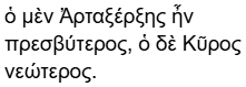 πρεσβύτερος μὲν Ἀρταξέρξης, νεώτερος δὲ Κῦρος: