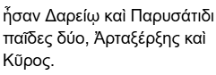 Δαρείου καὶ Παρυσάτιδος γίγνονται παῖδες δύο,