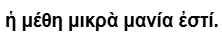 (어휘) ἡ(정관사) μέθη(과음, 만취) μικρὰ(작은, 적은) μανία(정신이상) ἐστί(이다).